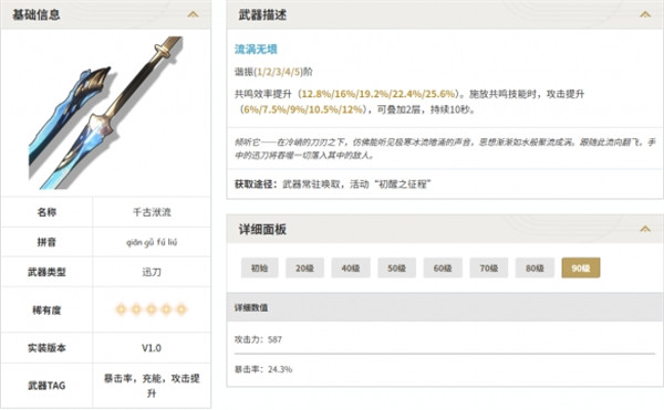 常驻池的五星,基本上人手一把,主词条加暴击并且提升共鸣效率和攻击力。