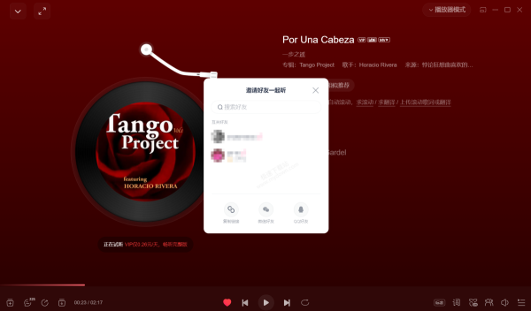 QQ音乐VIP歌曲也可以和好友一起听吗