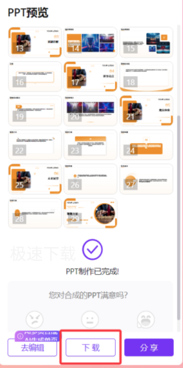 10.经过等待后PPT完成制作,点击【下载】进行保存。