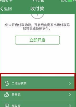 2、在“收付款”页面中,我们点击进入“二维码收款”