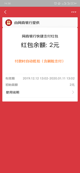 网商银行快捷支付红包怎么领取?