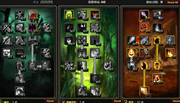天赋描述:60级术士经典火毁天赋,有着强大的爆发力,输出手法1献祭3暗影箭1燃烧