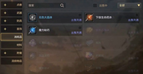 对于消耗品,现在没有过多的物品可以交易的,药水之类和大晶体,今后还是会有一些百分比的大药的。