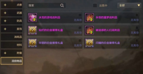 流拍物品就是工会拍卖行没有人买的物品就会放入到这里,让更多的玩家进行购买,里面是拥有徽章的可以购买的。