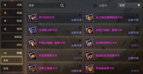 在附魔中都是大家遇到的卡片还有宝珠,大家可以在其中寻找适合自己的材料进行打造自身的属性。