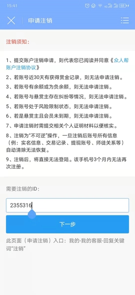 用户可以详细的查看众人帮账户注销协议;