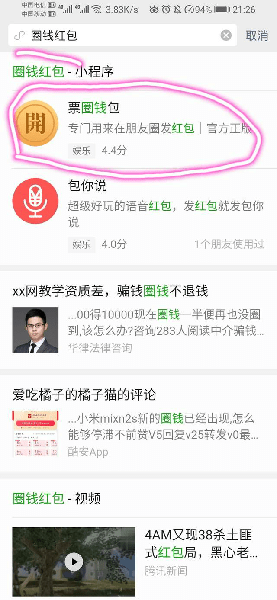 2、 点击进入,在搜索框输入:“票圈钱包”,然后搜索。