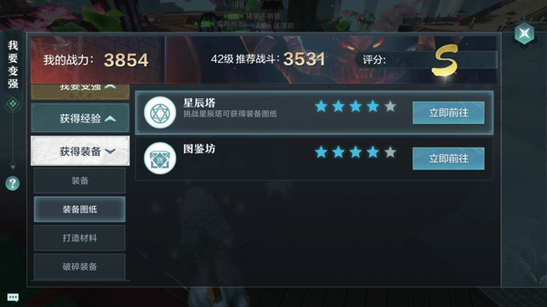 在平时我们可以在变强里面,打开获得装备,点击装备图纸即可看见星辰塔在哪啦。