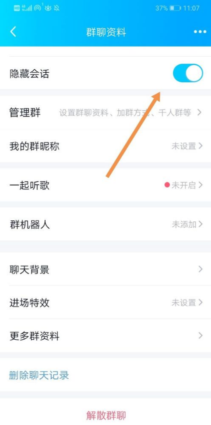 8、然后点击关闭“隐藏会话”右边的开关即可!