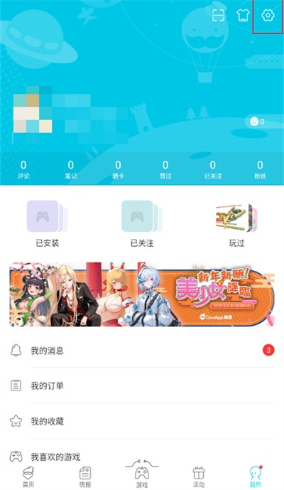 2、进入个人空间界面后,点击右上角的设置功能按钮;
