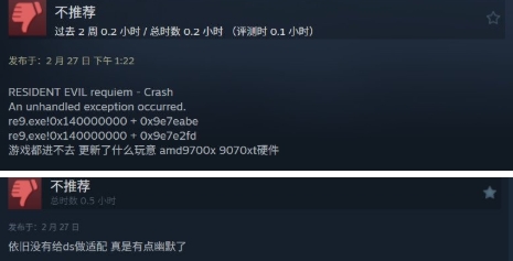但目前根据Steam评论区的玩家反馈,游戏存在严重的闪退问题。许多玩家遇到了报错崩溃,导致无法进入游戏。此外,还有部分玩家反馈游戏不支持索尼DS手柄。目前,卡普空并未对此事作出回应,不过预计将很快推出修复补丁。