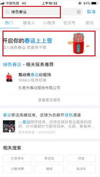 1、打开支付宝手机app在首页搜索绿色春运,如图所示点击进入