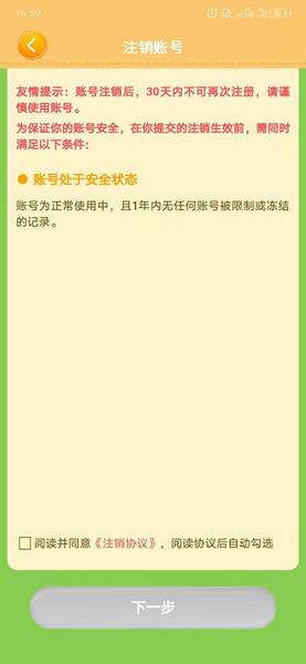 4、在注销账号的界面满足条件的用户可以注销账号了
