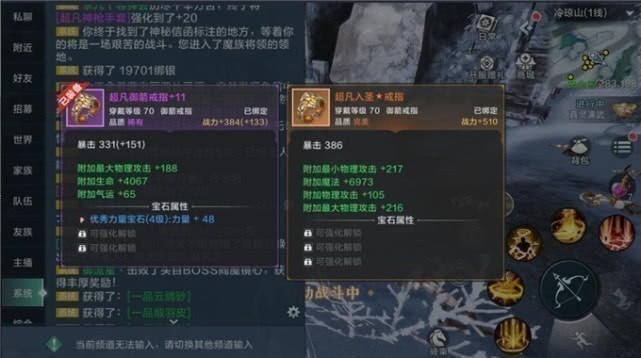 装备强化是拉开战斗力最重要的方式之一,白晶玉和绑银是强化装备的必须材料。装备强化等级越高,需要的白晶玉越多,成功率也会越来越低。每次强化失败后,下一次强化的成功率增加5%,强化等级越高,战斗力加成越高。