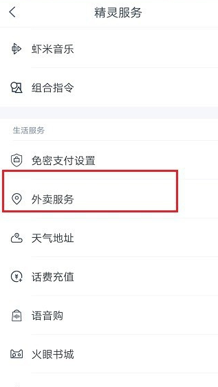 2、然后我们就可以点击【精灵服务】-【外卖服务】;