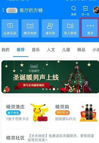 1、首先我们是可以在手机上点击打开天猫精灵的,之后就在首页上点击【更多】;