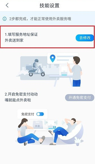 4、设置外卖收货地址和开通饿了么免密支付;