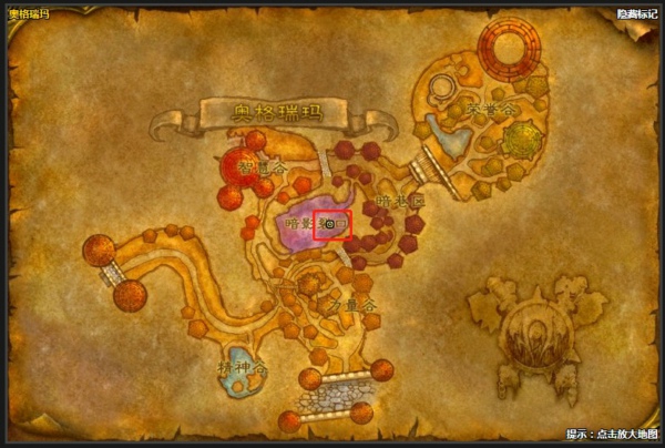 在奥格瑞玛暗影裂口,如上图所示之中,坐标49.4,50.0的位置。