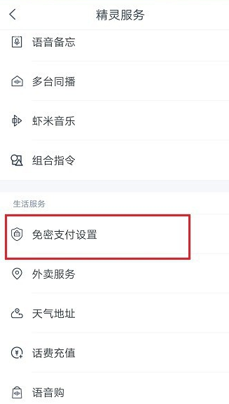 2、然后我们就可以在【精灵服务】中点击【免密支付设置】;
