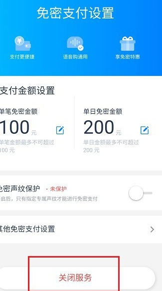 3、之后在免密支付设置页面中,我们可以点击关闭服务;