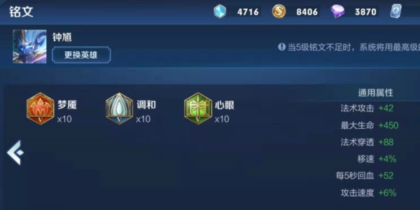 钟馗这个英雄,可以出的铭文真的有很多,你可以出铭文,也可以出法穿,你甚至可以出肉,加回血都可以,因为这个英雄可以打的位置太多了,除了打野这个英雄都可以打。