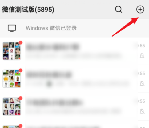 1.首先打开微信,进入页面之后,点击右上角的+。