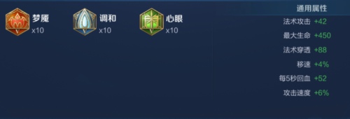2、铭文推荐:10个梦魇(红色铭文),10个调和(蓝色铭文),10个心眼(绿色铭文)。