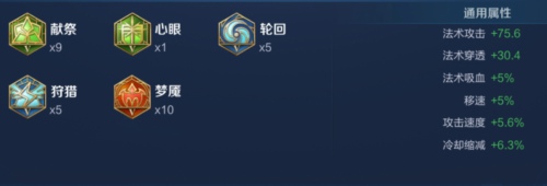 1、铭文推荐:9个献祭(绿色铭文),1个心眼(绿色铭文),5个轮回(蓝色铭文),5个狩猎(蓝色铭文),10个梦魇(红色铭文)。