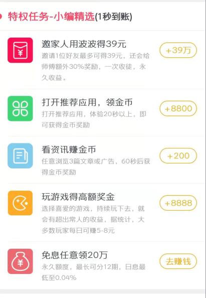 波波视频赚钱的方式有着很多种的,不过在改版以后小编建议大家多做一点特权任务就可以很好的提现,现在上线了很多的赚钱特权任务,赚钱任务每天都可以优先提现,只要达到0.3元就可以申请提现了。