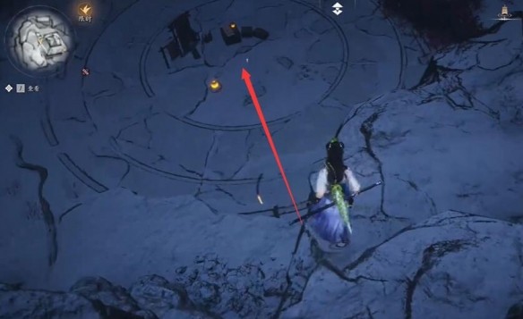 4、返回到【天水集】这里向左边走可以看到一个莲台,在里面的发光点拾取第一个。