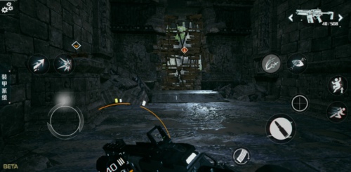首先告诉大家,怎么奔跑吧,只要大家向前一段距离,并且方向不变就可以变成奔跑的形式,奔跑的模样跟大多数的FPS游戏的动作是一样的,将枪贴在身上并不是对准前方的模样。就可以进行奔跑了。