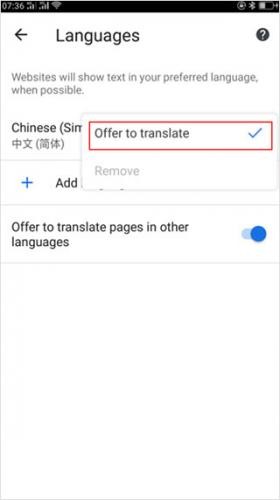7、最后在弹出的菜单选项中选择offertotranslate功能,这样手机浏览器就显示为中文了。