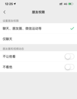 在最新的ios版本中,"朋友权限"新增“仅聊天”以及"聊天、朋友圈、微信运动等”两个权限选项。