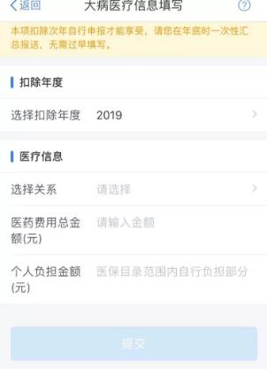 ■选择扣除年度、与纳税人的关系,据实录入个人负担金额以及医疗支出总金额