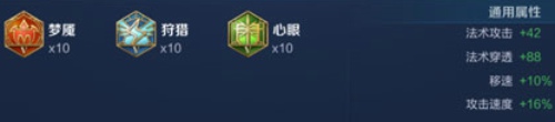 铭文推荐:10个梦魇(红色铭文),10个狩猎(蓝色铭文),10个心眼(绿色铭文)。