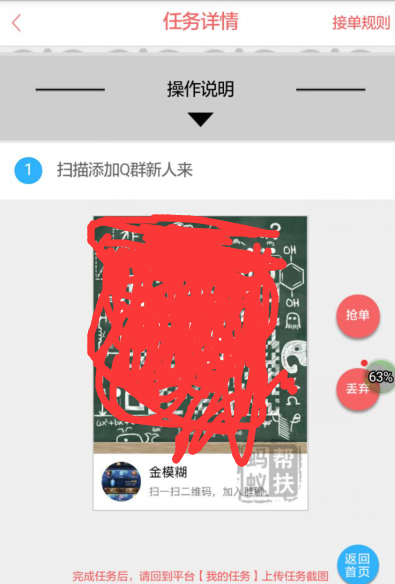 2.如需要做任务可以直接点击个人想做的任务标题,进入下个页面点击抢单根据操作说明进行完成。如中途不想继续完成直接点击丢弃即可。