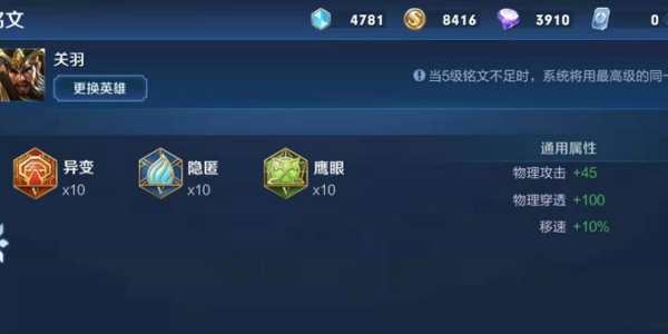对于关羽来说,最重要的肯定是移速还有物穿了,小伙伴们肯定可以根据这两个出到最佳的铭文,但是我们后期是要出肉的,主要要后期伤害可以达到最大化,还是要偏物理穿透一点。