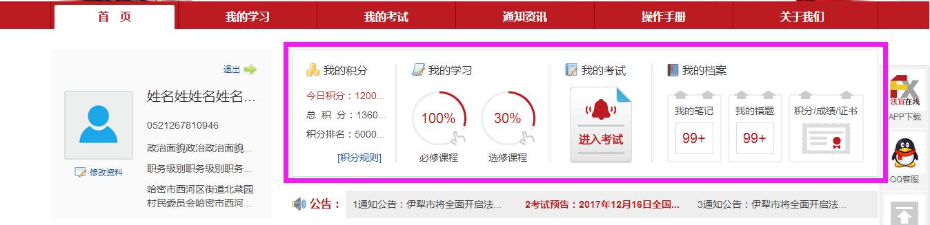 据了解,该平台不用安装,学员不用培训,只要会上网就可在线学法。学员在完成课程和考试后,平台自动生成电子版成绩证书,学员可自主下载打印。平台设置了五级(全国、省、市、县、用户单位)成绩汇总排名和查询功能,以及六级(全国、省、市、县、用户单位和学员)学法电子档案等功能。