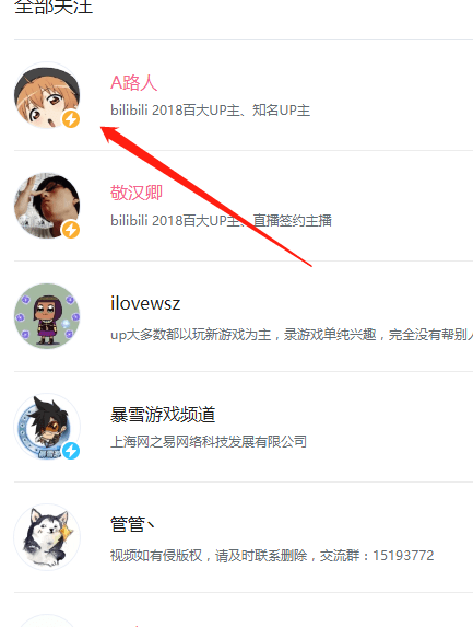 3.我们在关注数的界面随便找一位用户打开即可。