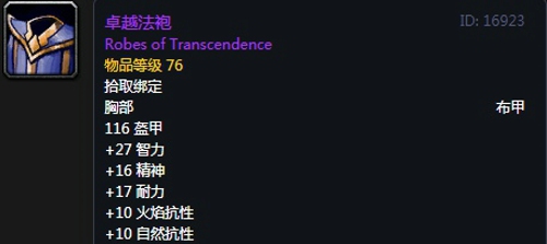 卓越法袍:胸甲,出自黑翼之巢副本奈法利安掉落,推荐附魔强效属性。