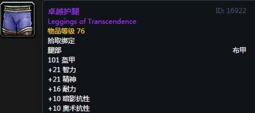 卓越护腿:腿部,出自熔火之心副本拉格纳罗斯掉落,推荐附魔专注秘药。