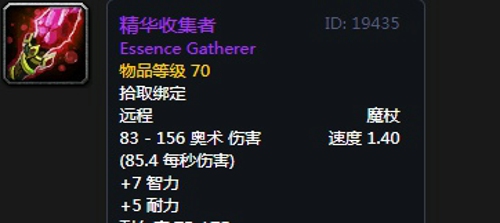 精华收集者:远程武器,出自黑翼之巢小怪掉落,无法附魔。