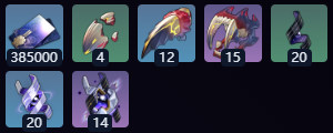 信用点×385000、步离犬牙×4、狼毒锯牙×12、月狂獠牙×15、掠夺的本能×20、篡改的野心×20、践踏的意志×14