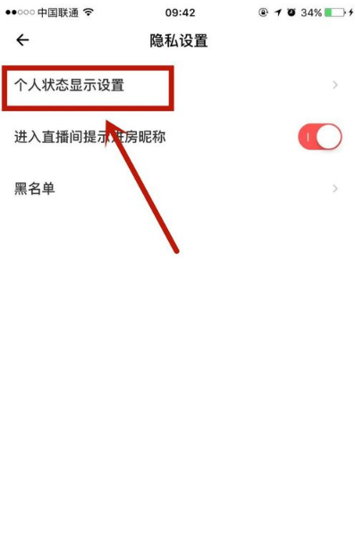 3、然后在隐私设置中找到“个人状态显示设置”,点击打开。