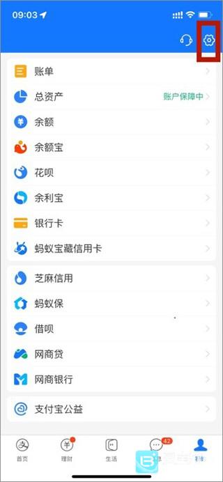2、进入我的界面上点击右上角“设置”图标;