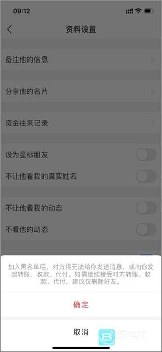 5、最后点击“确定”加入黑名单,加入以后会跳出加入成功界面,此后对方转账就是拒绝,会有提示黑名单。