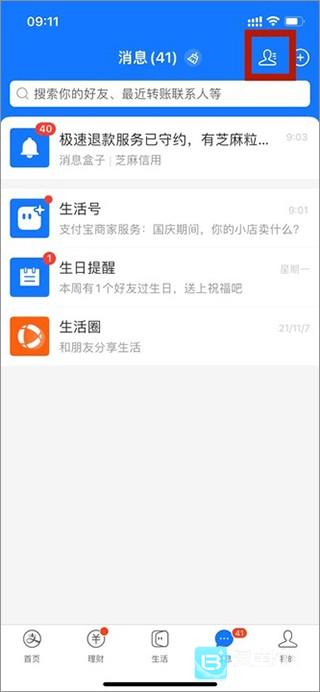 2、在消息的界面上方点击“通讯录”图标;