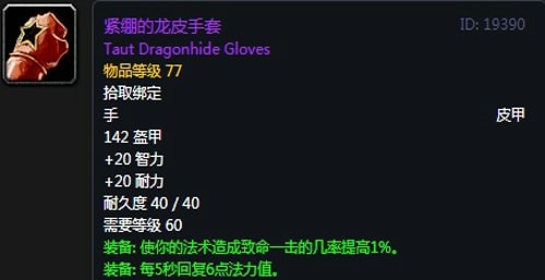 紧绷的龙皮手套:手套,出自黑翼之巢克副本洛玛古斯掉落,无法附魔。