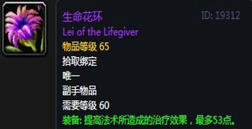 生命花环:副手物品,出自奥山声望奖励装备,无法附魔。
