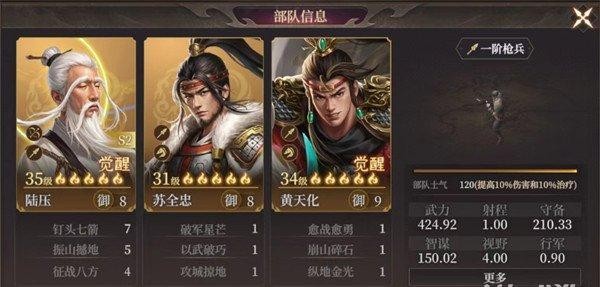 三武将都有不俗的群攻能力,邓婵玉给敌人施加减速,龙须虎附着易伤提升全队武力伤害,陆压+自带术法打出无视铁壁且概率禁疗的爆炸伤害。整个阵容的特点是buff多、出伤快、AOE伤害足。而且陆压龙须虎本身守备成长高身板相对较硬,所以该阵容不是特别怕对面单只骑兵冲脸。前期开荒跟后期攻城战都非常实用。